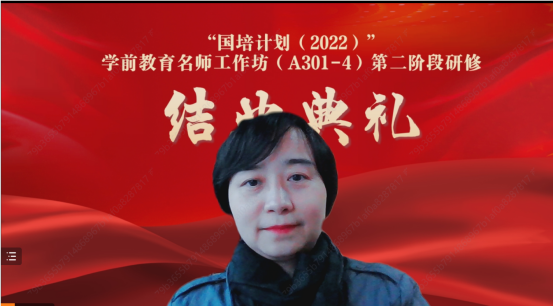 工作坊坊主张晓园长对培训项目进行了总结。她表达了三点体会:一是感动,被克服重重困难,兼顾线上学习和工作、生活的冲突,学习到深夜并认真撰写学习笔记的学员们所感动;其次是感恩,感恩培训组专家团队为给学员带来很好的学习体验,多次打磨研修课程,探索信息化、体验式等多种互动性强的授课方式;最后是感谢,感谢承办单位PA视讯现代教育发展学院对此次国培项目的持续性跟进和全方位的指导,他们的大力支持保障了线上学习活动的顺利完成。之后坊主宣读了优秀学员名单,对培训中积极参与,认真完成各项培训任务的教师进行了表彰,并希望大家将自己的所学所悟化为自身成长的动力,在学前教育新时代的浪潮中,明确航向,行稳致远!