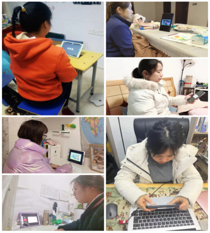 线上培训对专家、学员而言都是一种挑战,它改变了我们的培训模式和学习方式,但不变的是我们的敬业精神、强烈的责任感和对教育工作的热忱。学员居家认真听讲,用心记录,积极参与网络互动。