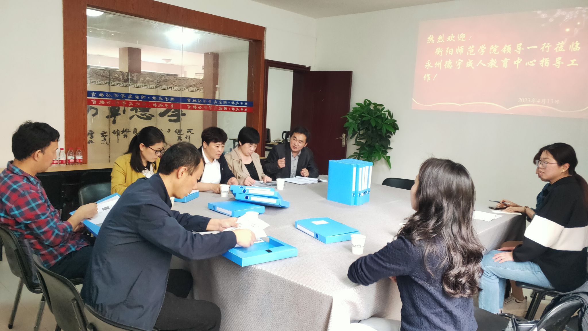 在永州德宇成人教育中心会议室听取函授站负责人汇报工作