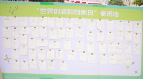 此次活动聚焦创新创业知识的普及和创新精神的培养,具体分为两个部分:一是在创新创业知识竞赛活动中,各参赛选手认真思考,踊跃作答,更加充分地认识到大学生积极创新创业的重要性,深入了解了在创新创业实践中所需要具备的专业知识和综合素养;在活动的最后,参赛者分别获得了服务中心准备的精美文创礼品,如定制书签、线圈本等,并合影留念。二是在创新创意寄语摆台活动中,参与者们在空白明信片上写下未来想要实现的创新创意、在学习和生活中的奇思妙想,并将寄托着希望与梦想的明信片粘贴在寄语墙上,以此激励自己不断开拓创新、锐意进取,将“双创”理念内化于心,外化于行。